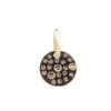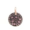 Pendente pavè in argento 925 di forma tonda con uno studio particolare di incassatura mista, arricchito da pietre taglio brillante di svariati colori e dimensioni. Fatto in Italia. (Diametro 16 mm)