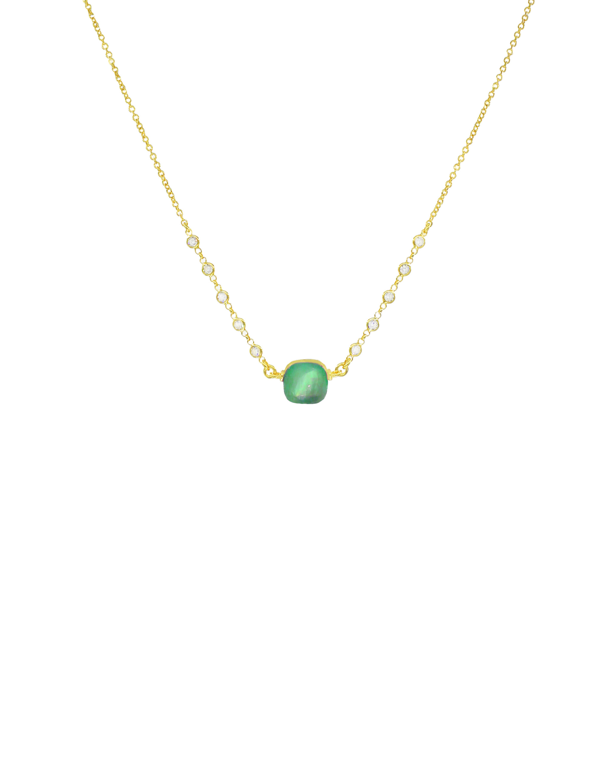 Collana con Pietra Verde Quadrata argento 925 dorato (cm45)