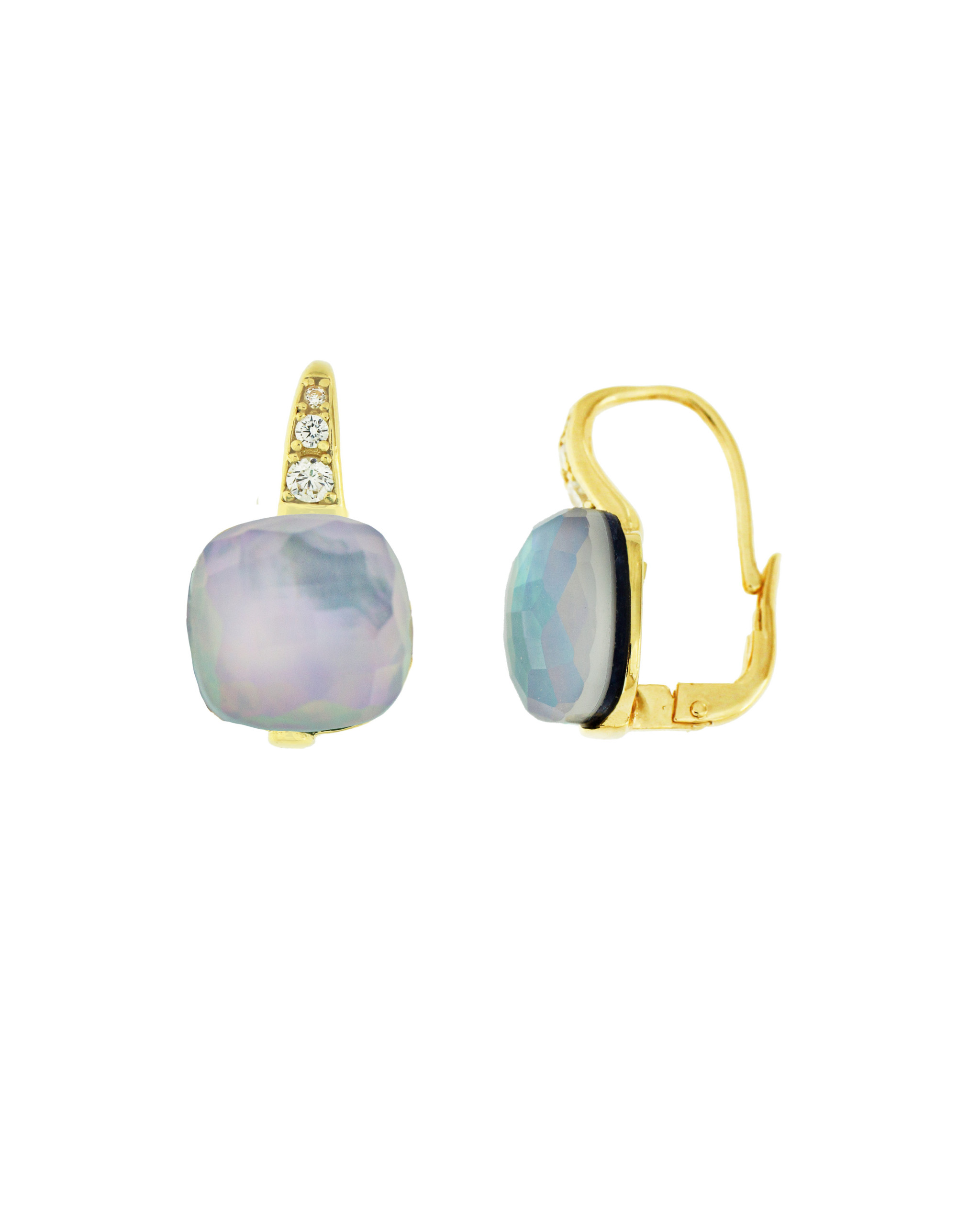 Orecchini monachella con pietra bianco latte quadrata argento 925 dorato