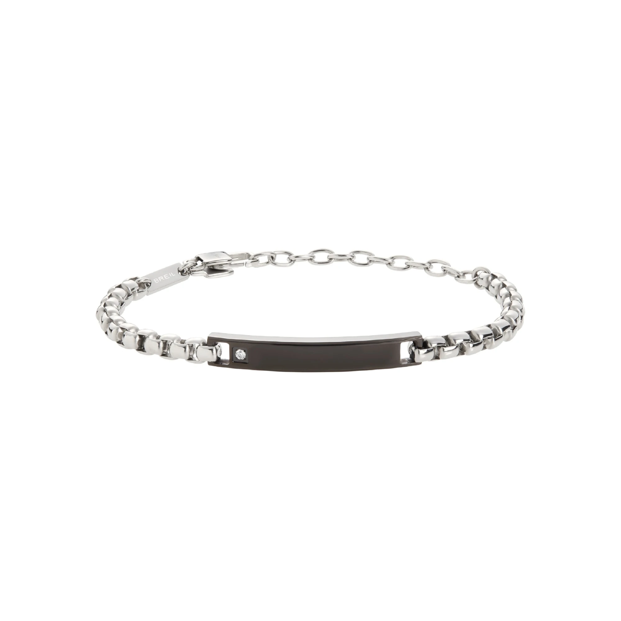 Il bracciale Tag and Cross è in acciaio con un elemento centrale con finitura IP black lucida, arricchito da un lucente Cubic Zirconia. Perfetto se indossato da solo al polso, ma ancora più interessante se accostato ad altri modelli della collezione, per creare un look più dinamico e moderno.