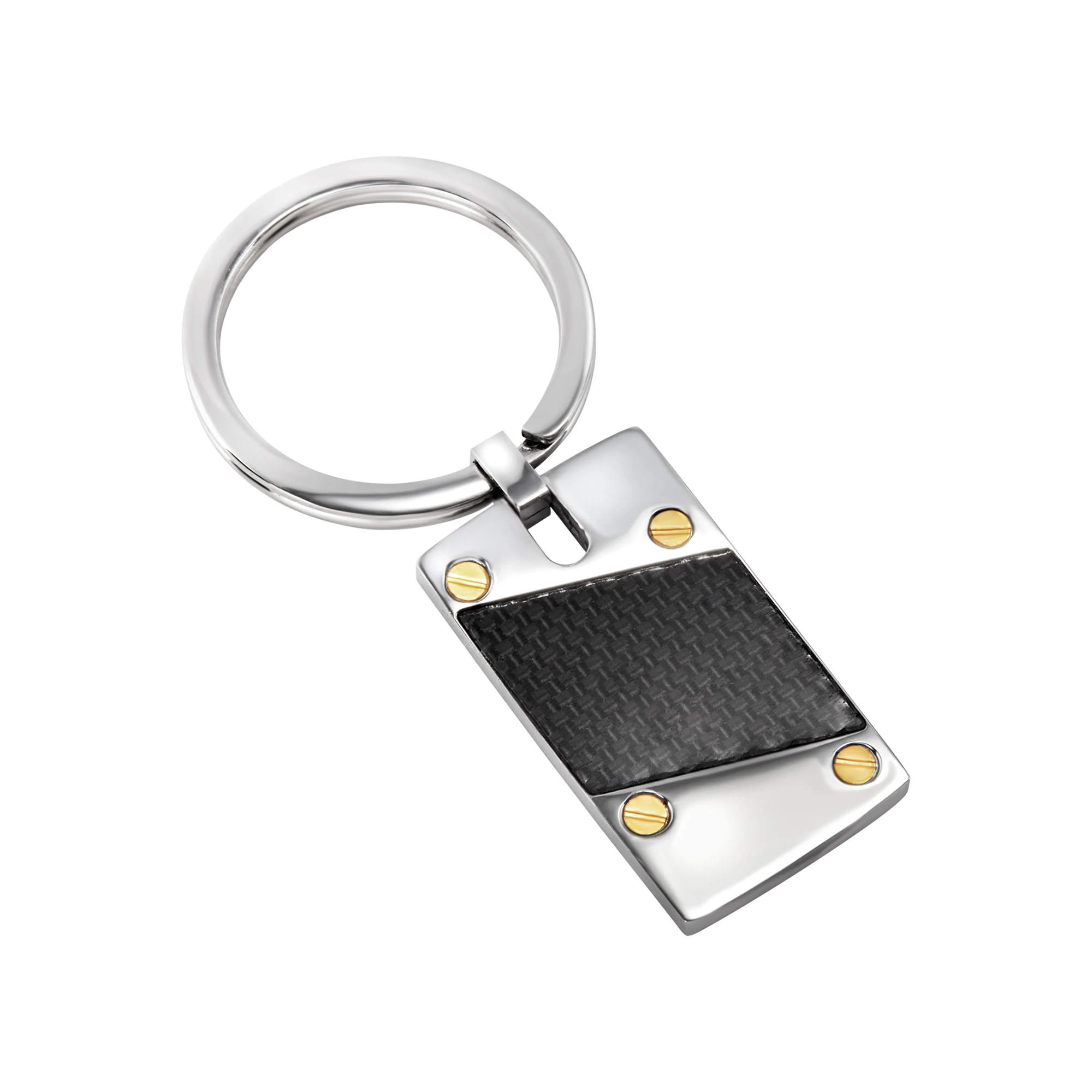 Il portachiavi Radiant Fiber combina perfettamente eleganza e funzionalità. Realizzato in acciaio lucido, presenta un inserto in fibra di carbonio che ne sottolinea il carattere contemporaneo, donando resistenza e leggerezza. Quattro viti gold, posizionate con precisione, impreziosiscono il design rendendolo un accessorio pratico e ricercato, perfetto per chi ama distinguersi anche nei dettagli.