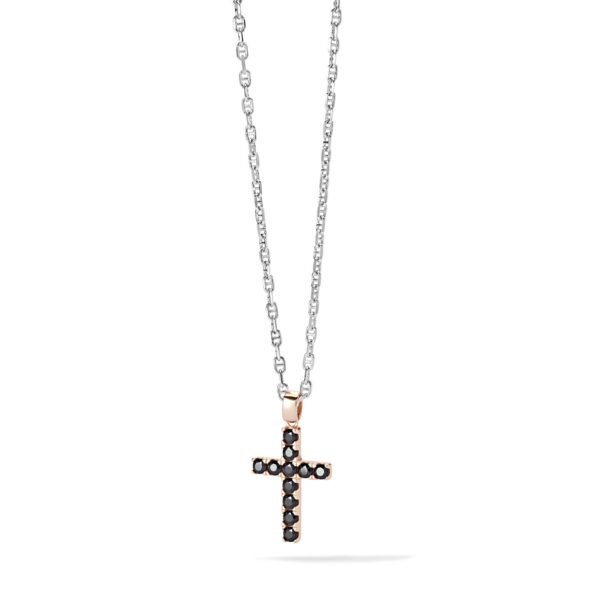 Girocollo in argento 925 con trattamento di doratura rose’e zirconi neri