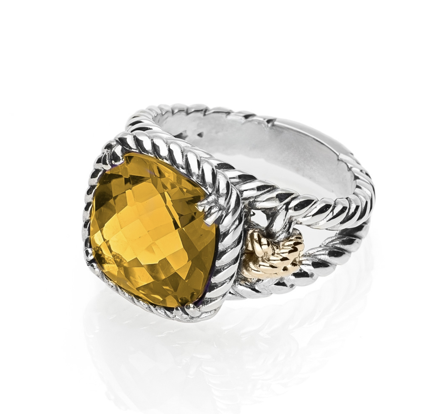 Anello realizzato a mano, esclusivamente nel laboratorio de’ Nobili, in argento 925 e in oro rosa 9kt e semipreziosi briole’.