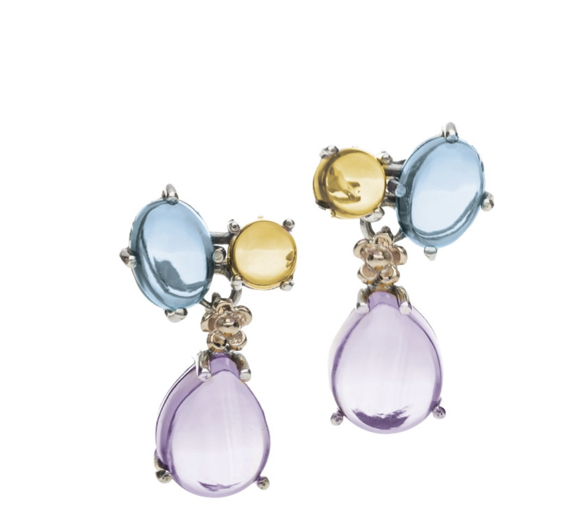 Orecchini realizzati a mano, esclusivamente nel laboratorio de’ Nobili, in argento 925 e oro rosa 9kt.
