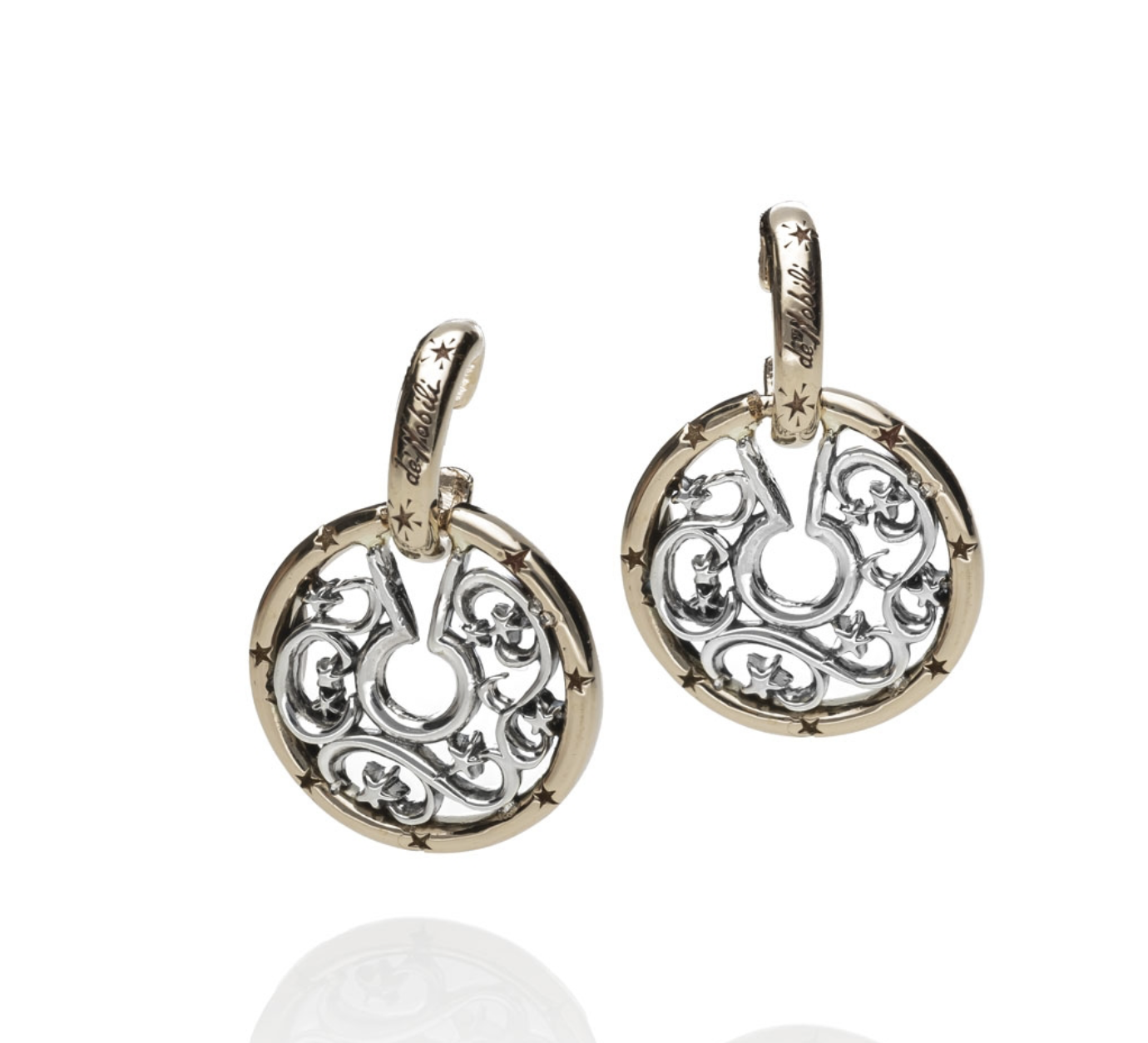 Orecchini realizzati a mano, esclusivamente nel laboratorio de’ Nobili, in argento 925 e oro rosa 9kt con semipreziosi.