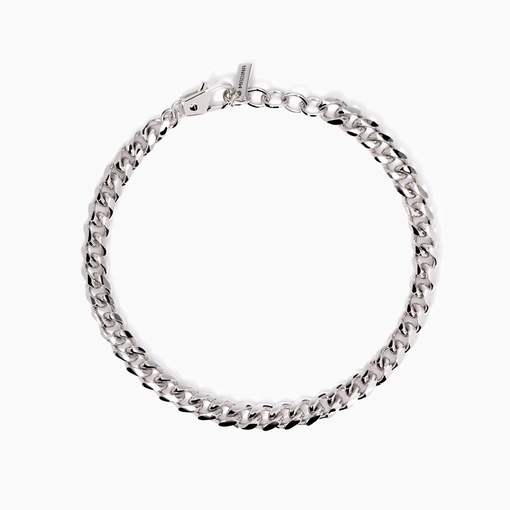 Bracciale regolabile da uomo in argento rodiato con catena groumette diamantata.
