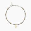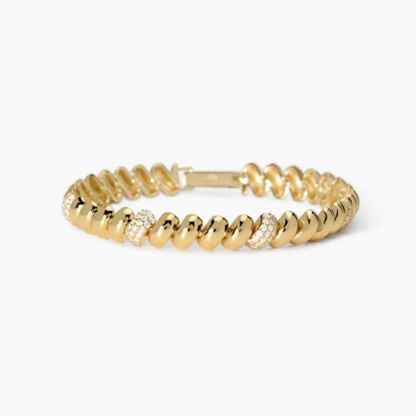Bracciale da donna in argento placcato oro giallo 18K con maglia San Marco e zirconi.