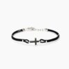 Bracciale con maglie in ceramica grigia e argento con zircone nero centrale. Chiusura in acciaio.