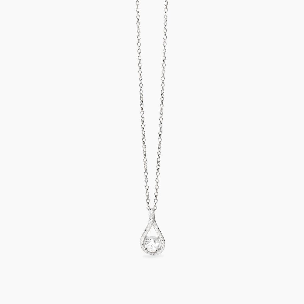 Girocollo in argento con catena rolò e pendente a goccia con zirconi.