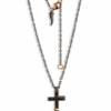 Bracciale uomo in titanio e diamanti black (ct. 2.00). La struttura è composta da una fila ininterrotta di diamanti da 3 punti incastonati su griffes in titanio e una in oro rosso da 18 Kt poste una accanto all’altra su una maglia elastica. In questo bracciale si racchiude l’idea del classico gioiello tennis con l’innovazione del materiale che lo rende leggero, sicuro e facile da indossare.
