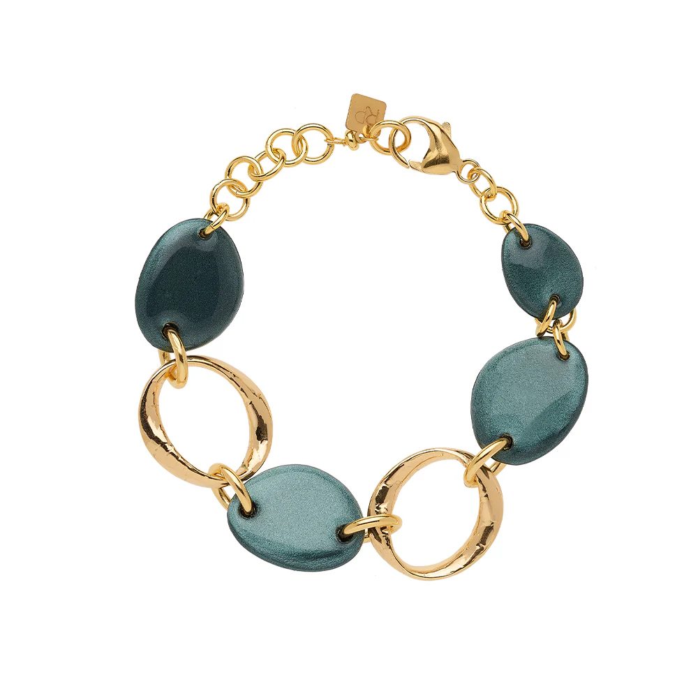 Bracciale in Argento 925 placcato oro giallo e legno laccato e smaltato a mano.