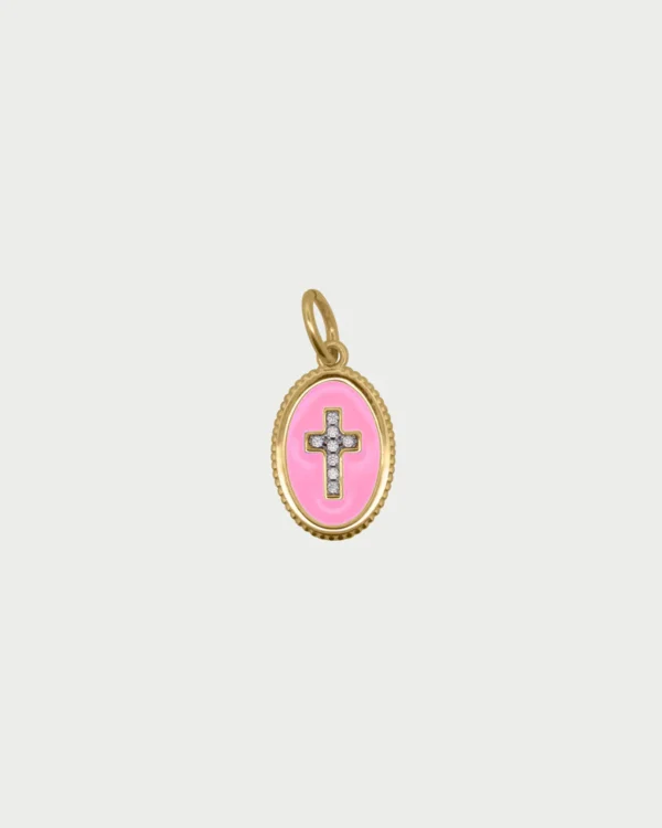 Il charm Cross è un elegante simbolo di fede e spiritualità, rappresentato da una croce smaltata colore rosa a mano in pregiato argento 925. Realizzato con cura artigianale in Italia, questo charm con dettagli raffinati e uno smalto colorato che ne esalta la bellezza. Perfetto per chi desidera portare con sé un segno di protezione e serenità, Cross può essere facilmente agganciato a bracciali e collane grazie al suo pratico anello. Aggiungi Cross alla tua collezione per un tocco di spiritualità e raffinatezza in ogni momento.