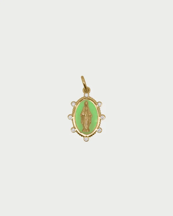 Il charm Madonnina è un simbolo di protezione e fede, rappresentato con una madonnina smaltata a mano in pregiato argento 925. Realizzato con cura artigianale in Italia, ogni dettaglio del charm è rifinito con maestria, mentre lo smalto, applicato a mano, conferisce un tocco di colore vibrante e un’eleganza unica. Grazie al pratico anello, Madonnina può essere facilmente agganciato a bracciali e collane, portando con sé un messaggio di fede e bellezza. Aggiungi Madonnina alla tua collezione per un tocco di serenità e grazia in ogni momento.
