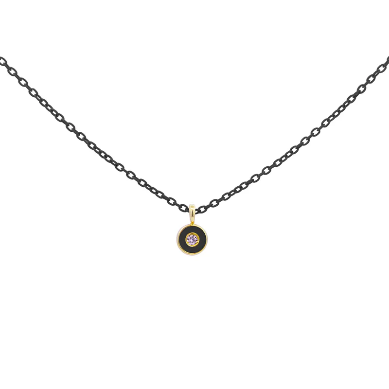 Girocollo con soggetto diamond Dot e smalto nero realizzato in oro 18 KT e rifinito a mano e catena verniciata color nero su base argento925.
