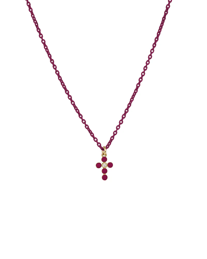L’oro 18Kt, il prediletto in gioielleria per la sua resistenza e durevolezza, è protagonista di questo delicato girocollo, arricchito da una croce composta da elementi smaltati e rifinito a mano. Al centro della croce brilla un diamante lab-grown, creato con processo CVD (Chemical Vapor Deposition), simbolo di innovazione e sostenibilità. La catena, in argento 925 verniciata in vari colori, aggiunge un tocco contemporaneo e fresco. Una creazione dove materiali preziosi incontrano design minimalista, pensato per accompagnarti ogni giorno secondo la filosofia Rue des Mille.
