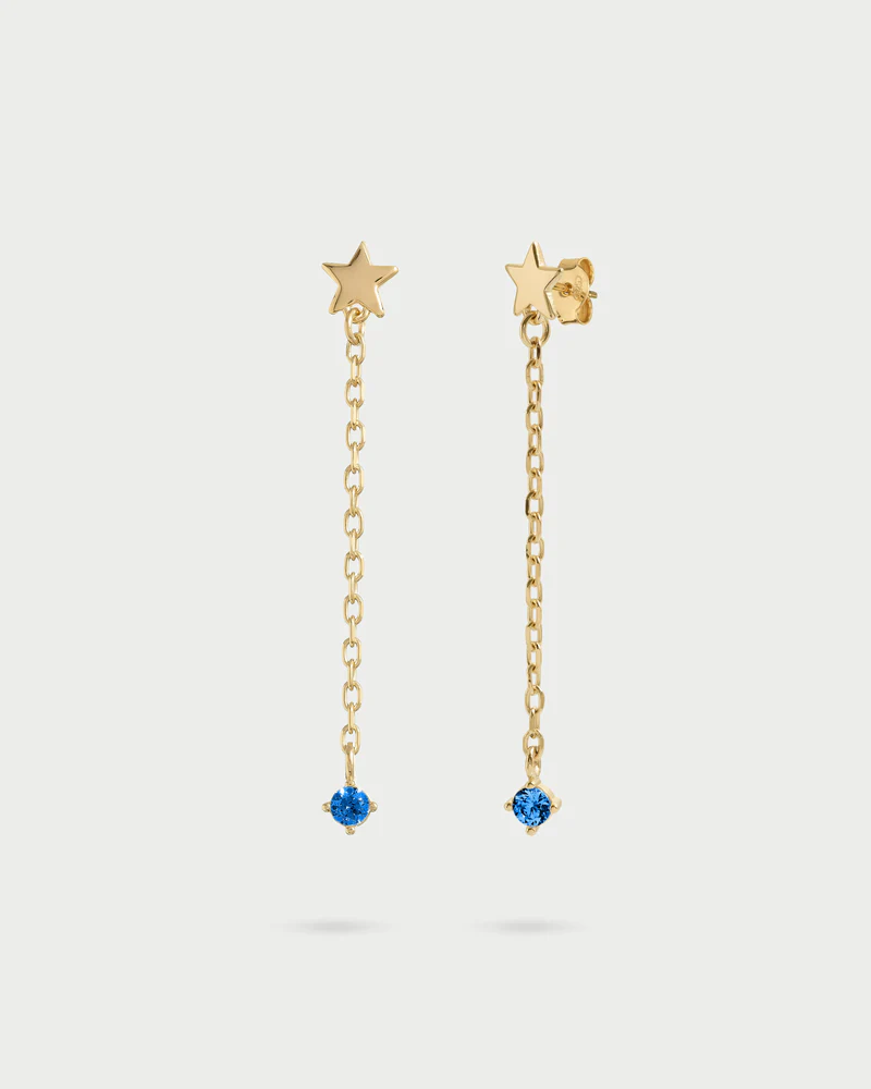 Orecchini a paio con stella catenella line e punto luce in zircone blu