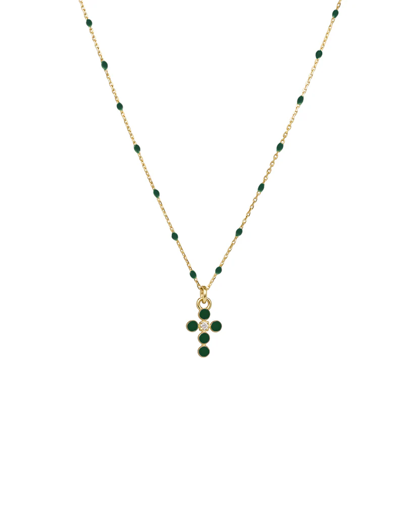L’oro 18Kt, il prediletto in gioielleria per la sua resistenza e durevolezza, è protagonista di questo delicato girocollo, arricchito da una croce composta da elementi smaltati e rifinito a mano. Al centro della croce brilla un diamante lab-grown, creato con processo CVD (Chemical Vapor Deposition), simbolo di innovazione e sostenibilità. La catena sempre in oro18kt è composta da piccoli semini smaltati che aggiungono un tocco contemporaneo e delicato. Una creazione dove materiali preziosi incontrano design minimalista, pensato per accompagnarti ogni giorno secondo la filosofia Rue des Mille.