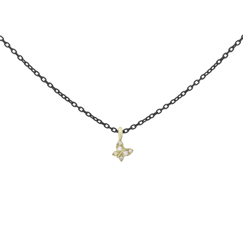 Girocollo con soggetto farfalla realizzato in oro 18 KT e rifinito a mano e catena verniciata su base argento925.