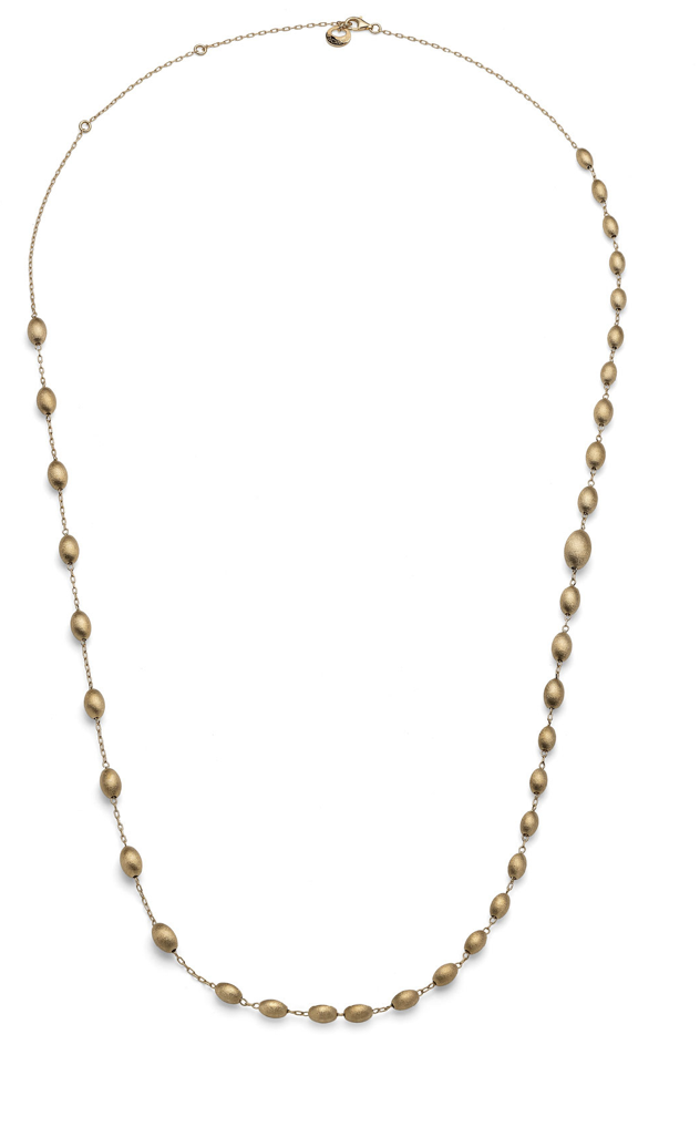 Collana lunga in argento dorato, catena sottile e perle ovali in finitura satinata. Lunghezza 80,00-90,00 cm. Se ami i dettagli raffinati, amerai questa collana. Le perle ovali si alternano leggere lungo la linea di questa splendida collana in argento 925 per un tocco d’eleganza senza tempo ad ogni tuo look. Scopri la collezione Boule ed abbinala ai gioielli fashion coordinati.