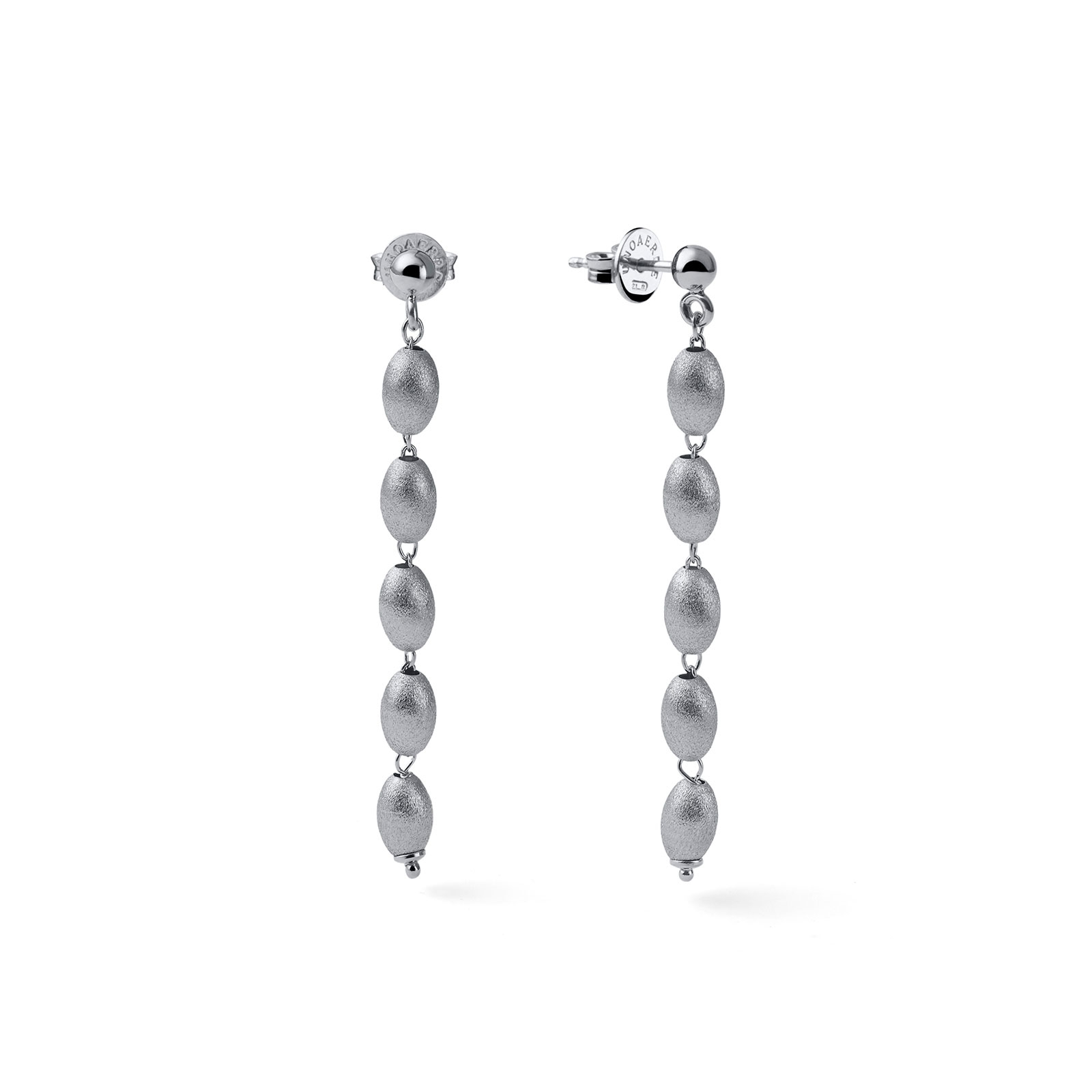 Orecchini pendenti in argento rodiato, catena sottile e perle ovali satinate. Chiusura con perno e farfallina, lunghezza 6,00 cm. I dettagli giusti possono fare la differenza in un look e se ami distinguerti con classe ed originalità, non puoi lasciarti sfuggire questi raffinati orecchini in argento. Le perle ovali in finitura satinata si susseguono con leggerezza lungo la catena per un tocco extra di stile in ogni occasione. Scopri i gioielli Boule coordinati e crea il tuo mix unico!